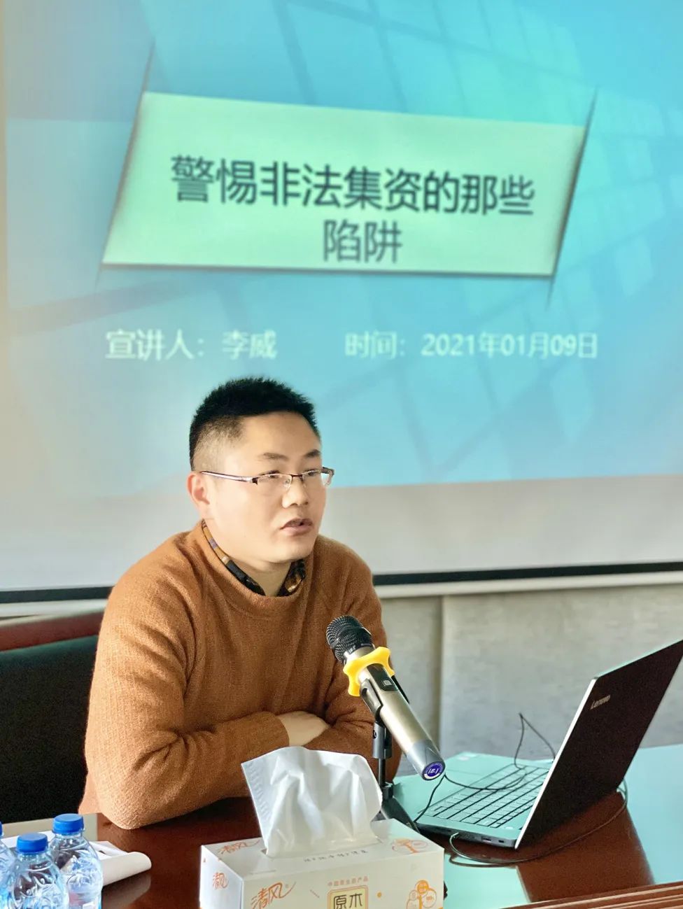 為提高公司員工防范非法集資風險意識,在歲末年關(guān)守好“錢袋子”,1月9日公司特邀濱湖區(qū)地方金融監(jiān)管局來司開展的防范非法集資主題宣講活動,為員工開展了一堂生動的普法課。